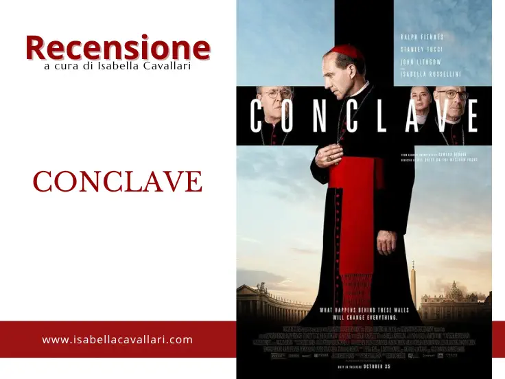 sotto le Feste di Natale ho voluto portare la mamma al Cinema per vedere insieme CONCLAVE, film tratto dall’omonimo romanzo di Robert Harris (che non ho letto): un thriller diretto da Edward Berger e con un cast ricco di grandi nomi, come Ralph Fiennes (Lord Voldemort nella saga di Harry Potter), Stanley Tucci (indimenticabile ne Il Diavolo Veste Prada), John Lithgow (protagonista di Una Famiglia del Terzo Tipo), Sergio Castellitto (tra i tanti ricordiamo Le Cronache di Narnia il Principe Caspian) e Isabella Rossellini (La Morte ti Fa Bella è solo uno dei tanti).